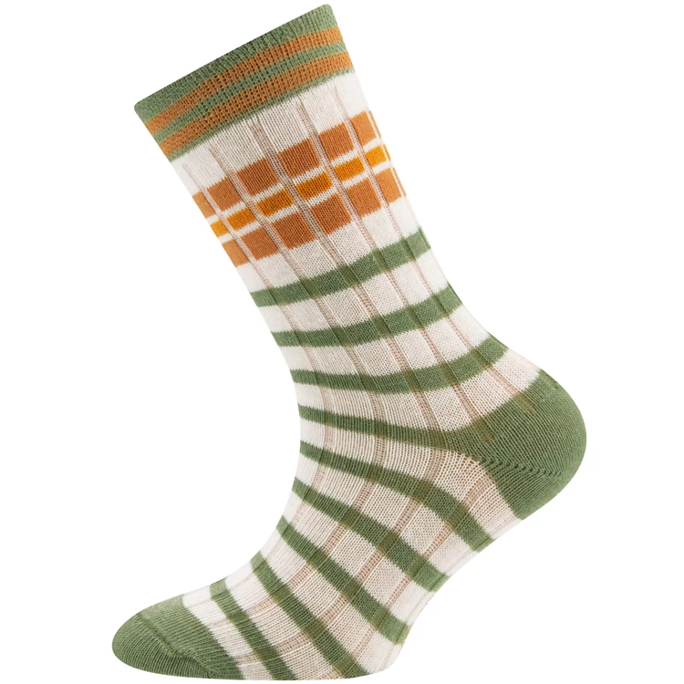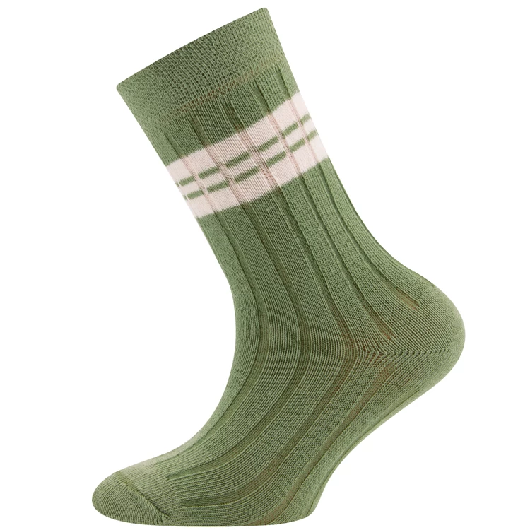 3-Pack Kindersokken Ewers met Ribpatroon – Set van 3 paar – Effen Creme/Beige en Creme met Strepen Groen en Oranjebruin