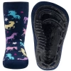 Antislipsok Ewers – Donkerblauw met een speels design van bloemen en blaadjes.