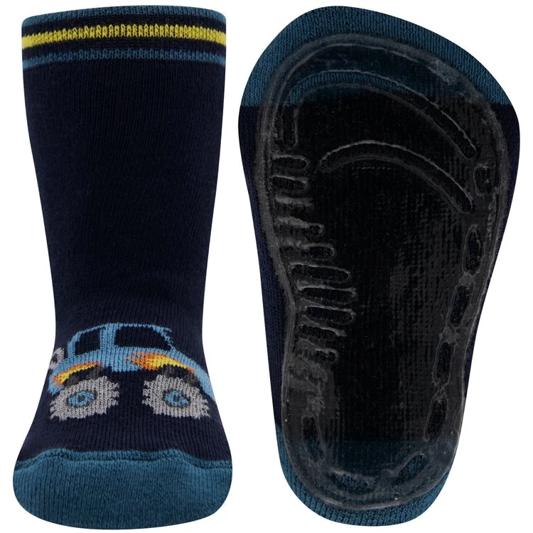 Antislipsok Ewers – Donkerblauw met een stoere Monstertruck / Auto.