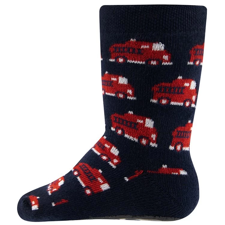 Antislipsok Ewers donkerblauw met Rode Brandweerwagens.