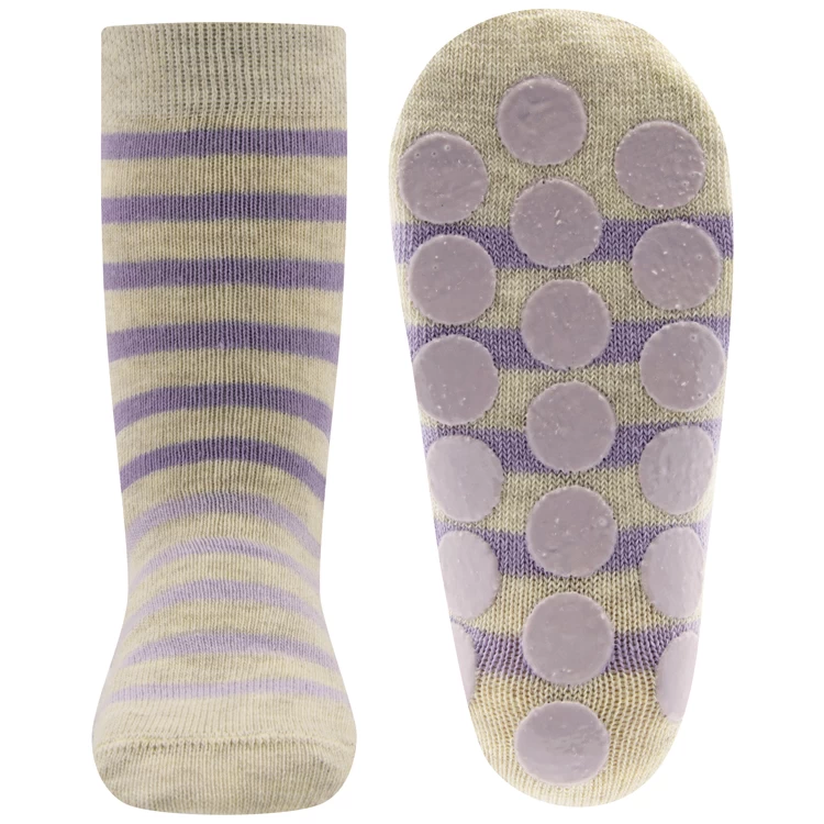 Antislipsok Ewers 2-Pack – Set 2 paar – Lila met bloemen en Beige met Lila Streepjes – Antislipnopjes
