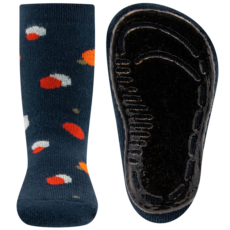 Antislipsok Ewers – Donkerblauw met Stippen Wit-Oranje-Oranjebruin