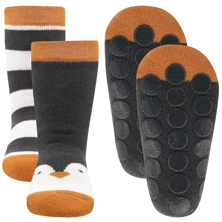 2e paar: Donkergrijs met Speels gezichtje van een pinguin.