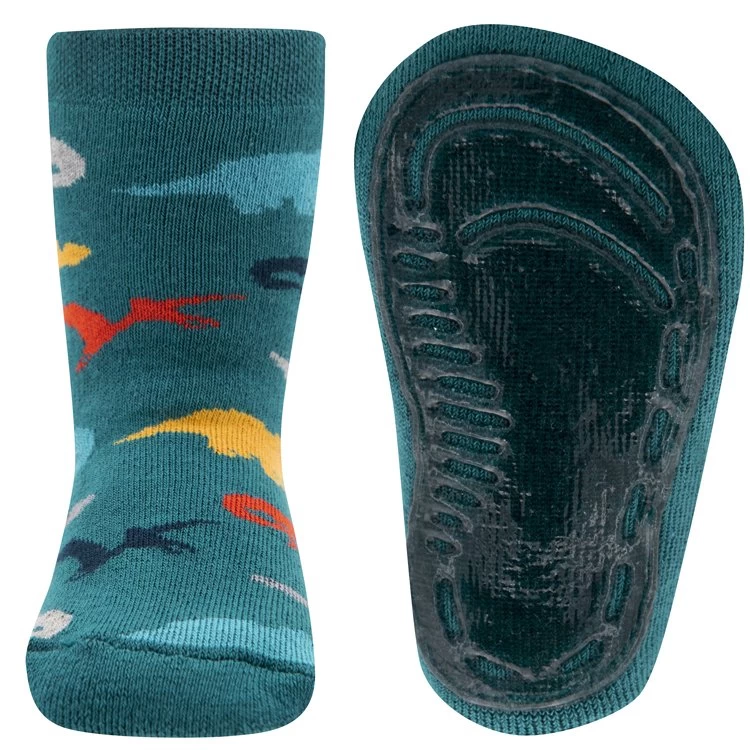 Antislipsok voor volwassenen in Zeegroen met Gekleurde Dinosaurussen – Ewers.