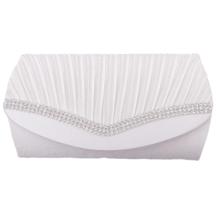 Het tasje is bedekt met een satijnachtige stof en afgewerkt met strass steentjes.