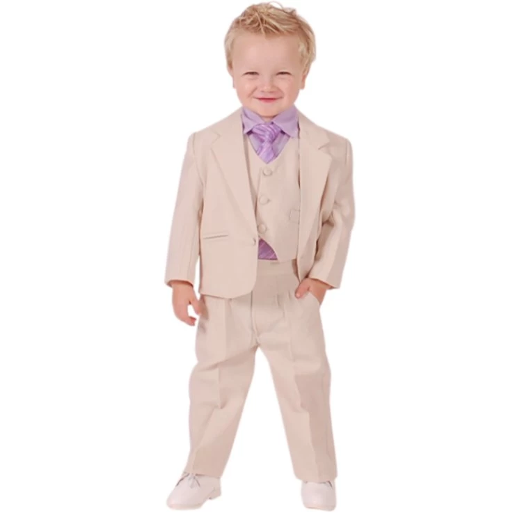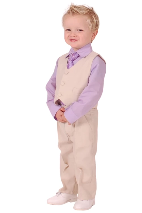 Hier gecombineerd met een babyoverhemd, een kinderstropdas en nette schoenen.