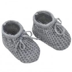 Leuke gebreide babyslofjes in de kleur muisgrijs.