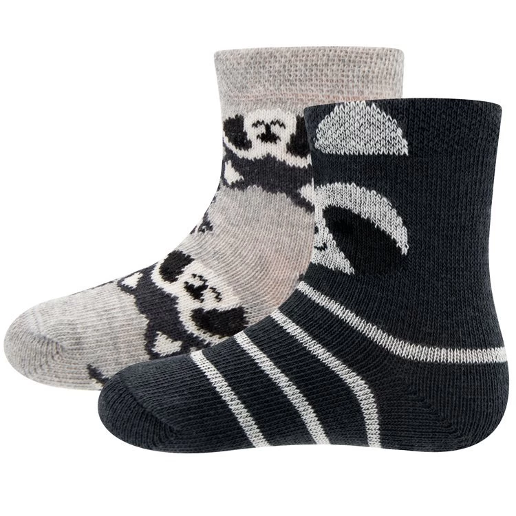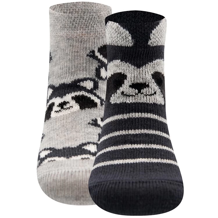 Babysokjes met Wasbeertjes Donkergrijs/Lichtgrijs 2 paar- Multipack