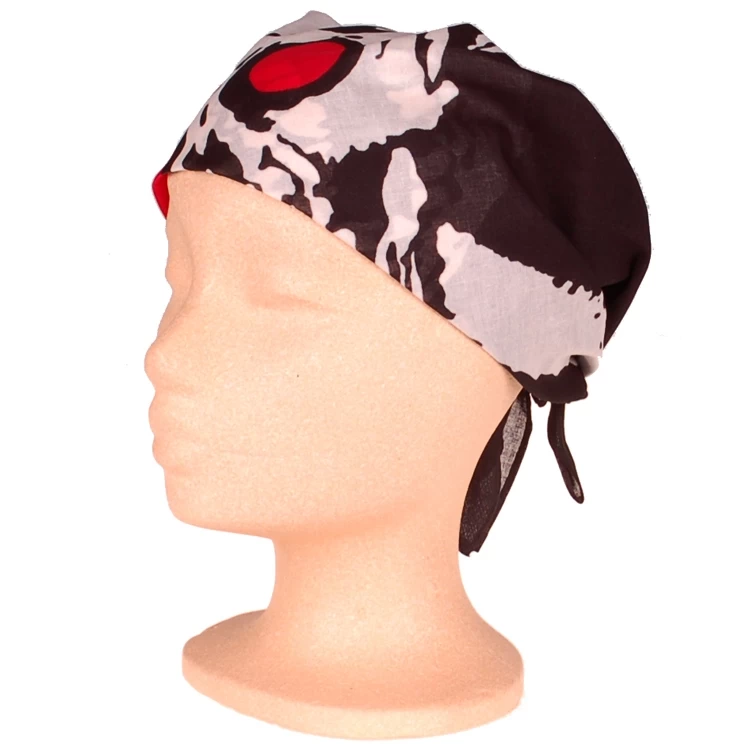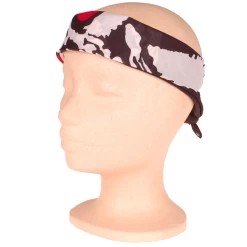 Kan als een piratendoek rond het hoofd gebonden worden.