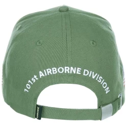 Op beide zijkanten vind je een Amerikaanse vlag en op de achterkant staat ‘101st AIRBORNE DIVISION’ in witte letters. Op de voorkant van de pet staat een groot geborduurd 101st Airborne embleem. De mooie zwarte klep heeft een subtiele gele rand.