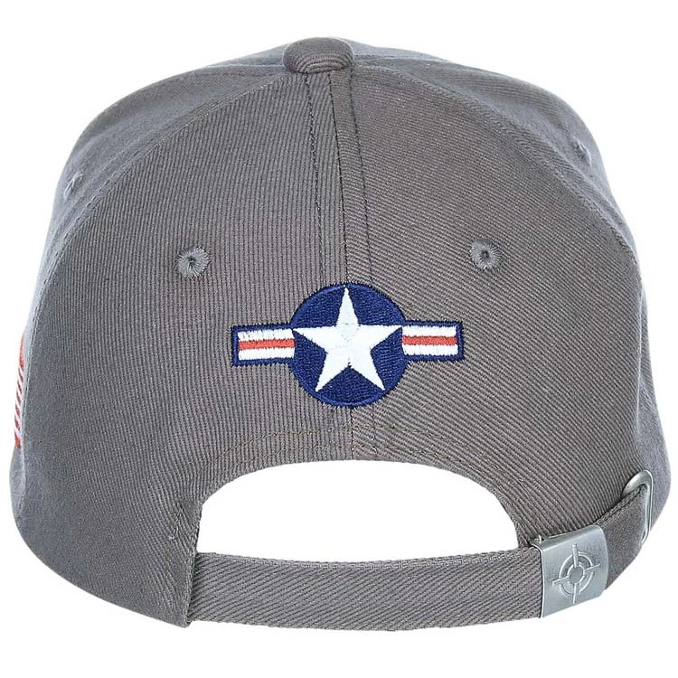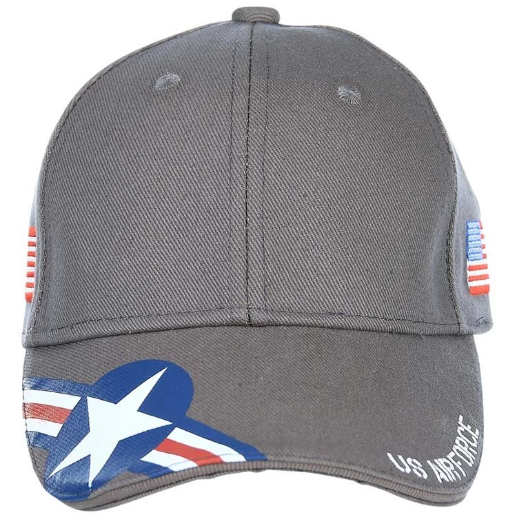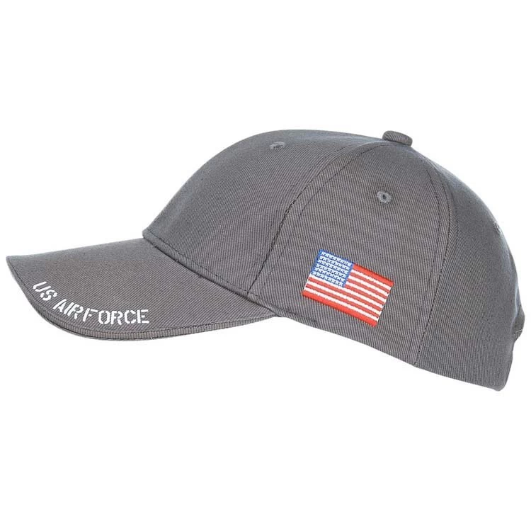 Op de achterkant van de pet is het logo van de USAF geborduurd en op beide zijkanten de vlag van de Verenigde Staten. Op de klep staat aan de ene kant US AIRFORCE in witte letters en aan de ander kant van de klep het logo van de USAF.