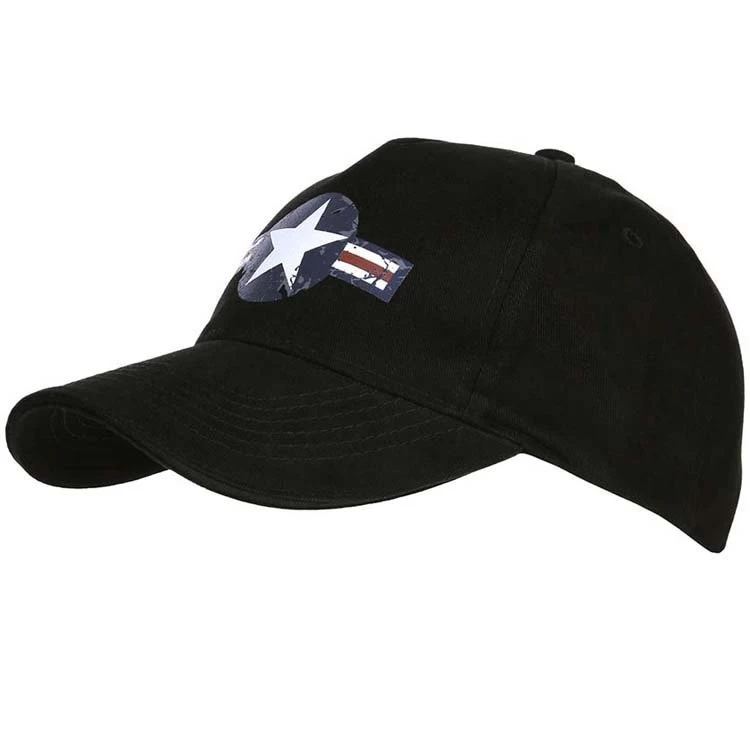 Op de voorkant van deze zwarte pet staat het logo van de USAF wat in de tweede wereldoorlog werd gebruikt.