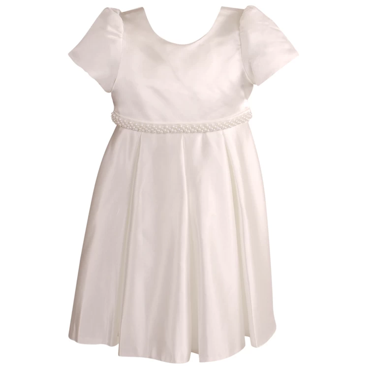 Rond de taille van dit jurkje voor communie en bruidsmeisjes zitten pareltjes.