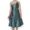 Deze satijnachtige stof valt soepel en de jurk is afgewerkt met verschillende accenten.