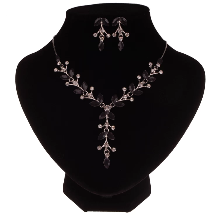 Dames Ketting Met Zwarte Bloemetjes En Steentjes