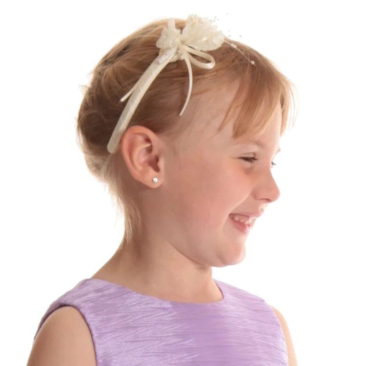 Ivoorkleurige diadeem met bloemen en kraaltjes.