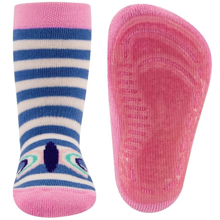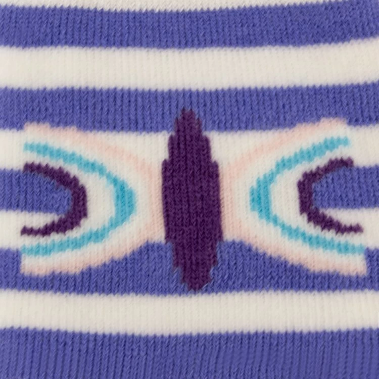 Op de neus van de antislipsok staat een vlinder in pasteltinten.