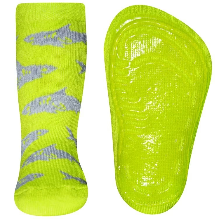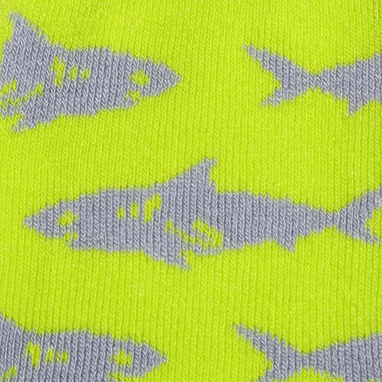 Op deze leuke fluoriserende geel/groene sokken staan haaien.