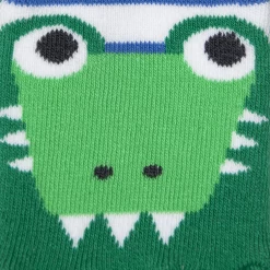 Op deze leuke sokken staat een afbeelding van een krokodil.