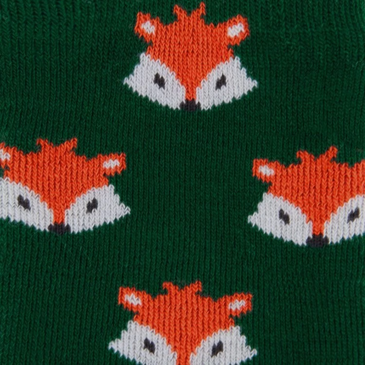 Op deze leuke donkergroene sokken staan vosjes.