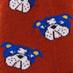 Op deze leuke oranje/bruine sokken staan hondenkoppen.