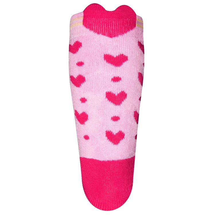 Op deze leuke sokken roze sokken staan fuchsia hartjes.