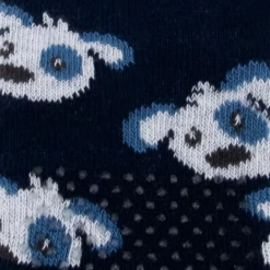 Voor de echte hondenliefhebber. Mooie donkerblauwe sokken met gezellige hondenkopjes erop. Deze sokken zijn voorzien antislopnopjes op de onderkant van de voet en op de boevenkant van de tenen. Deze kruipsokjes helpen de kleintjes te leren kruipen zonder uitglijden.