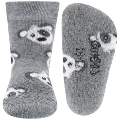 Grappige hondenkopjes sieren deze lichtgrijze sokken. Natuurlijk zijn deze kruipsokken heel leuk om te zien, maar ze zijn daarnaast ook heel praktisch! De sokken hebben fijne antislip nopjes op de onderkant, maar ook bovenop de tenen. Hiermee hebben de baby’s meer grip tijdens het kruipen.