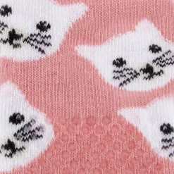 Leuke roze sokken met witte poezenkopjes. Het fijne van de sokjes zijn de antislip nopjes. Deze nopjes zitten zowel op de onderkant van de voet als op de bovenkant van de tenen. Hiermee hebben de kindjes extra grip tijdens het kruipen.