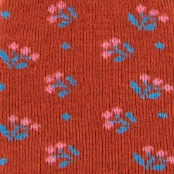 Op deze mooie donkeroranje sokken staan gezellige kleine roze bloemetjes.