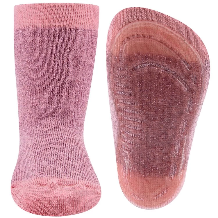 Oudroze antislipsokken waarbij de sok is doorweven met roze glittergaren.