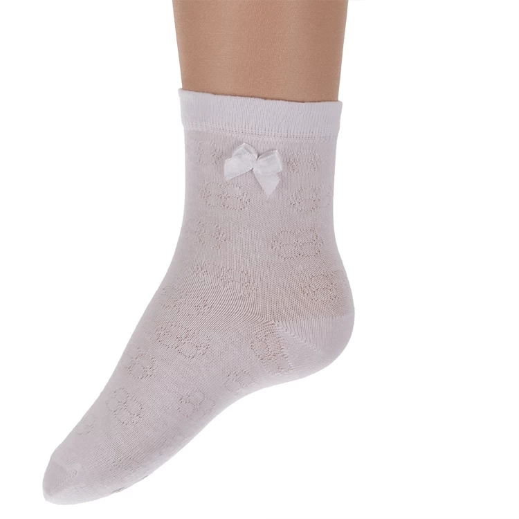 Witte sok met een bloemmotief.