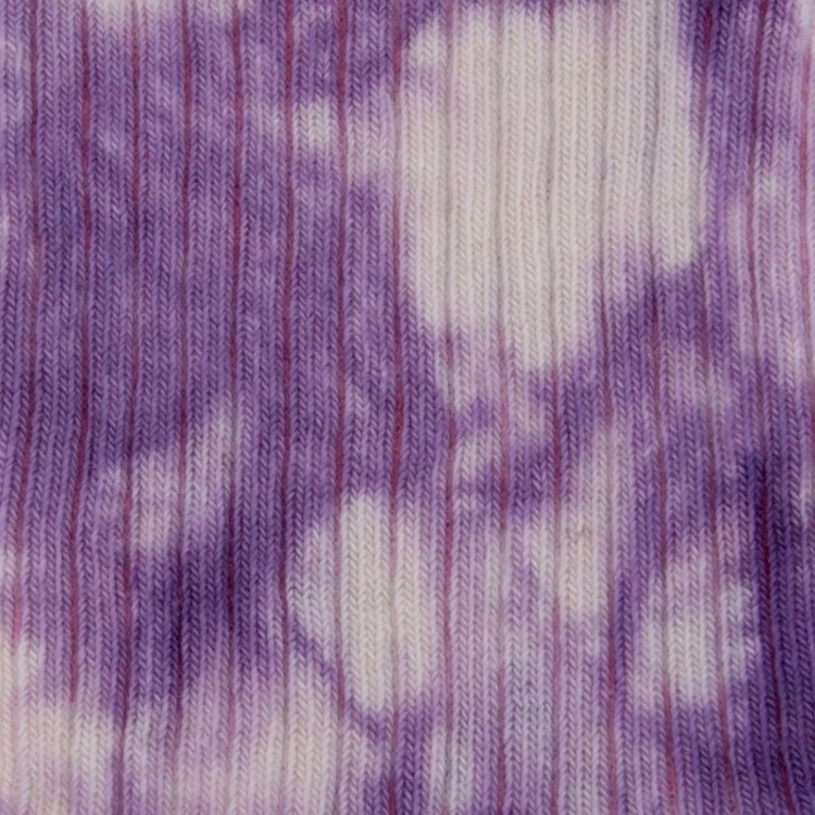 Deze sokken hebben een trendy lila/paarse Batik/Tie-dye print.