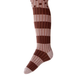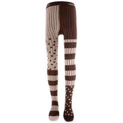 Ribmaillot voor meisjes Bruin met vakken, strepen en stippen.