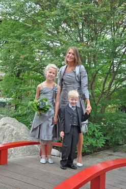 Op de rug zit elastiek en de taille wordt vastgestrikt met een strik op de rug.