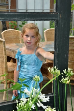Op de rug zit elastiek en de taille wordt vastgestrikt met een strik op de rug.