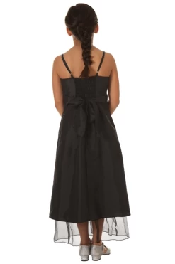 Op de rug zit elastiek en de taille wordt vastgestrikt met een strik op de rug.
