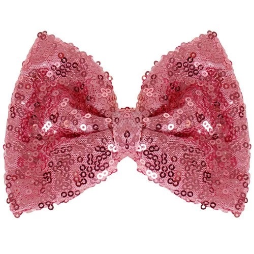 Hij is versierd met pailetten en heeft een oudroze kleur.
