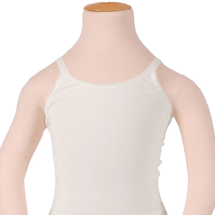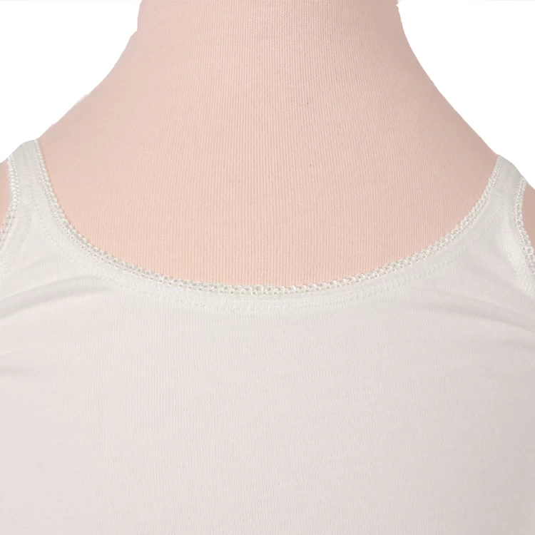 Dit witte hemdje is afgewerkt met een mooi sierrandje en valt netjes weg onder een meisjesjurk.