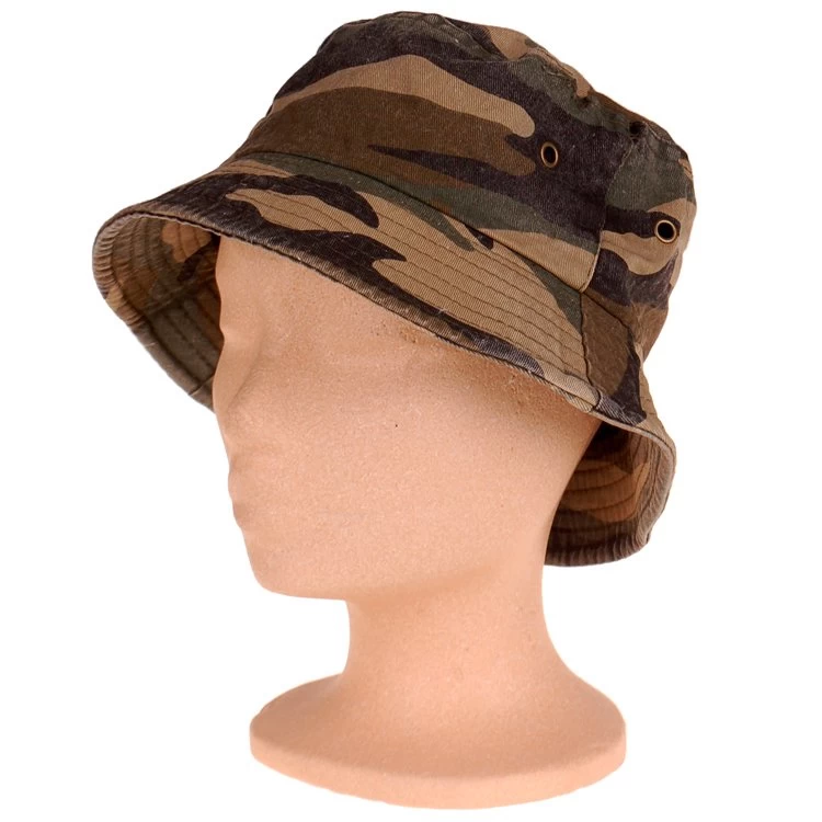 Een mooi tijdloos vissershoedje met een lichtbruine camouflageprint.