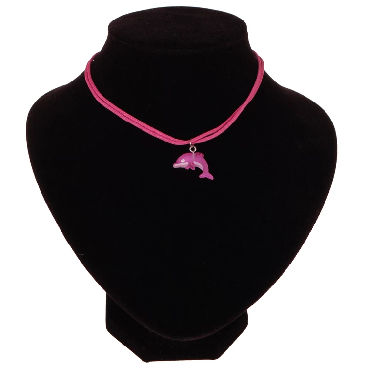 Aan de ketting hangt een fuchsia dolfijntje met fuchsia glittertjes.