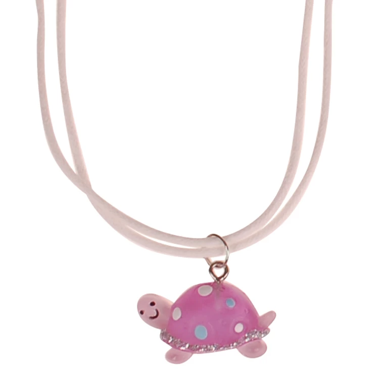 Kinderketting Schildpad wit met roze – 2,5×1,5cm