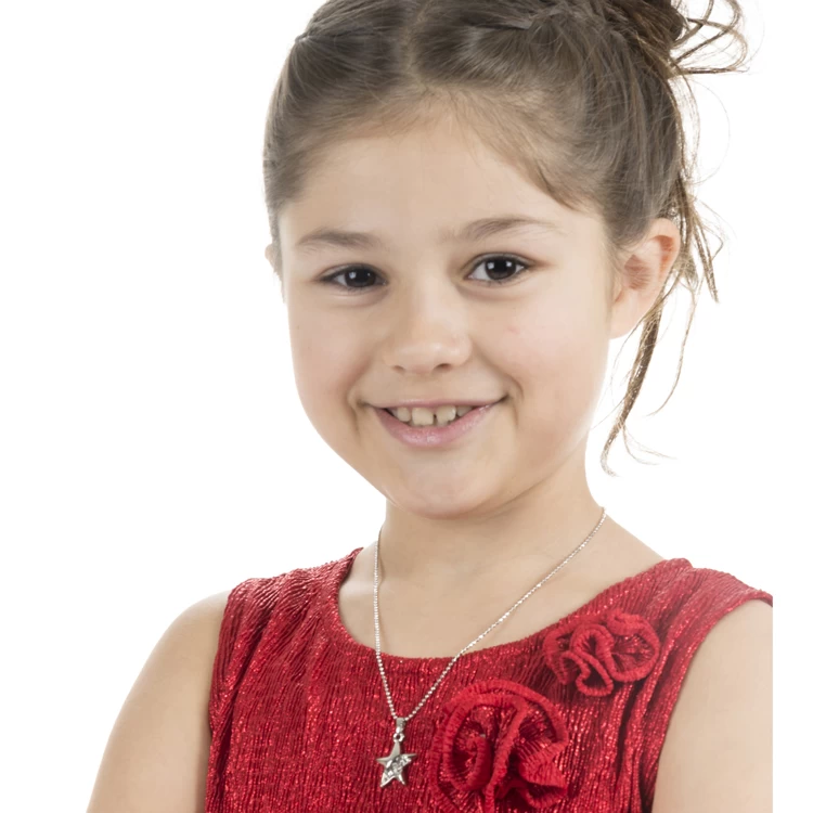 Aan de ketting zit een hangertje in de vorm van een ster.