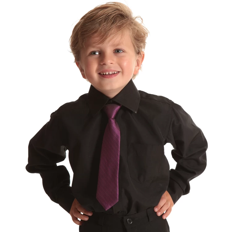 Zwart jongensoverhemd met lange mouwen.