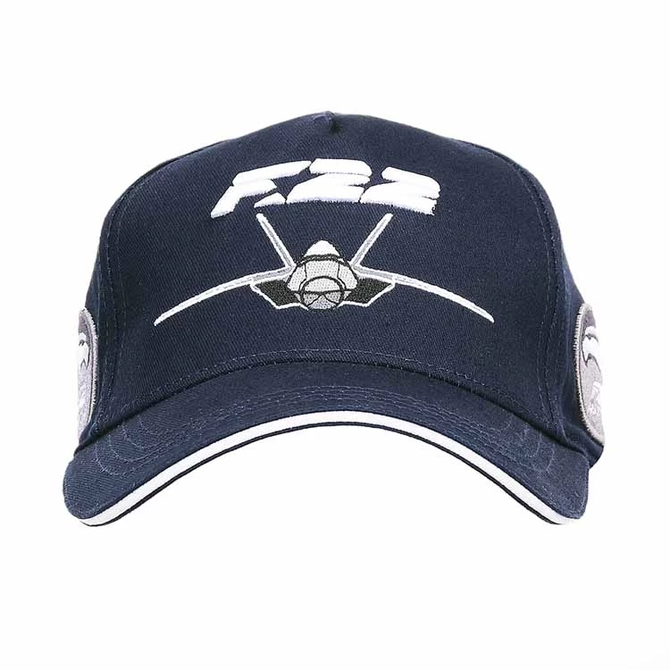 Donkerblauwe kinderpet met een afbeelding van een F-22.