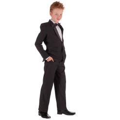 Het jasje van deze betaalbare smoking voor jongens heeft 1 knoop.