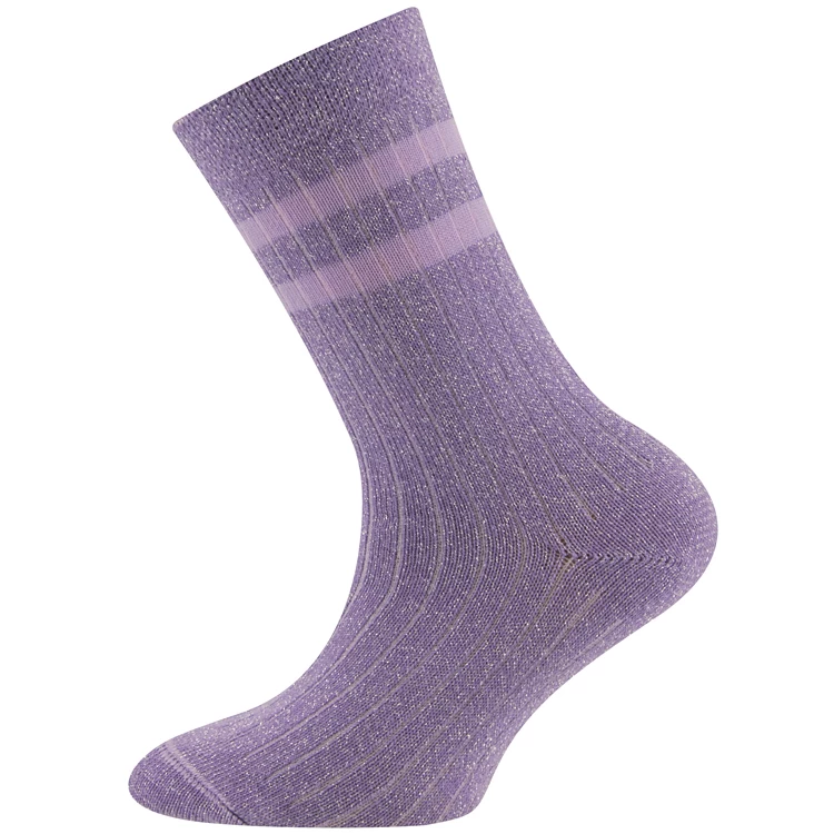 Kindersok Ewers Lila met Zilverkleurig Glittergaren met Ribpatroon – 2 Licht Lila strepen