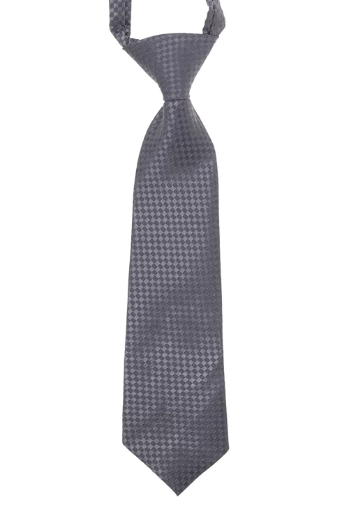Donkergrijze kinderstropdas glimmend met blokjes.