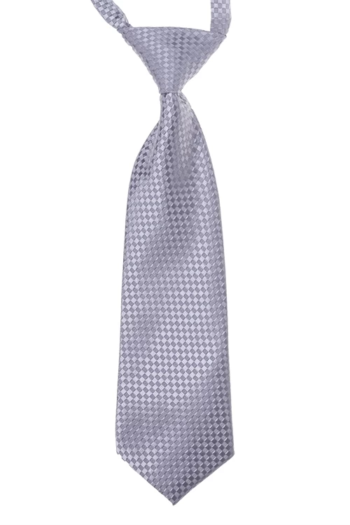 Zilvergrijze kinderstropdas glimmend met blokjes.