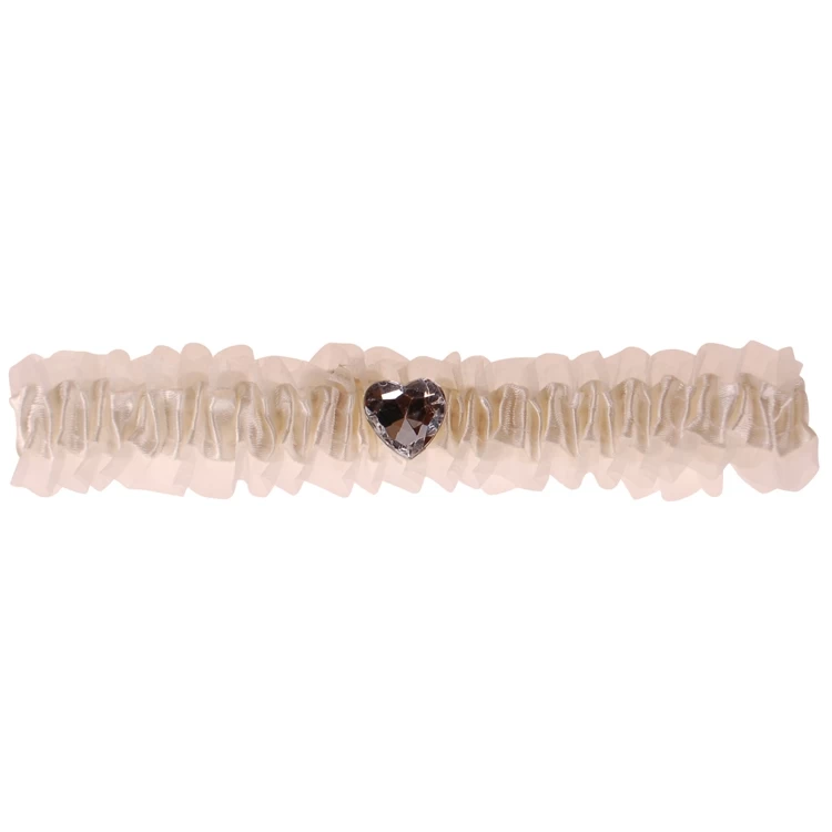 De band is gemaakt van ivoor elastisch kant met strass steentje in de vorm van een hartje.